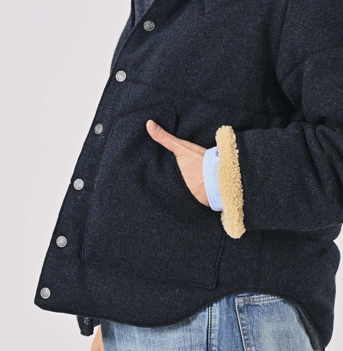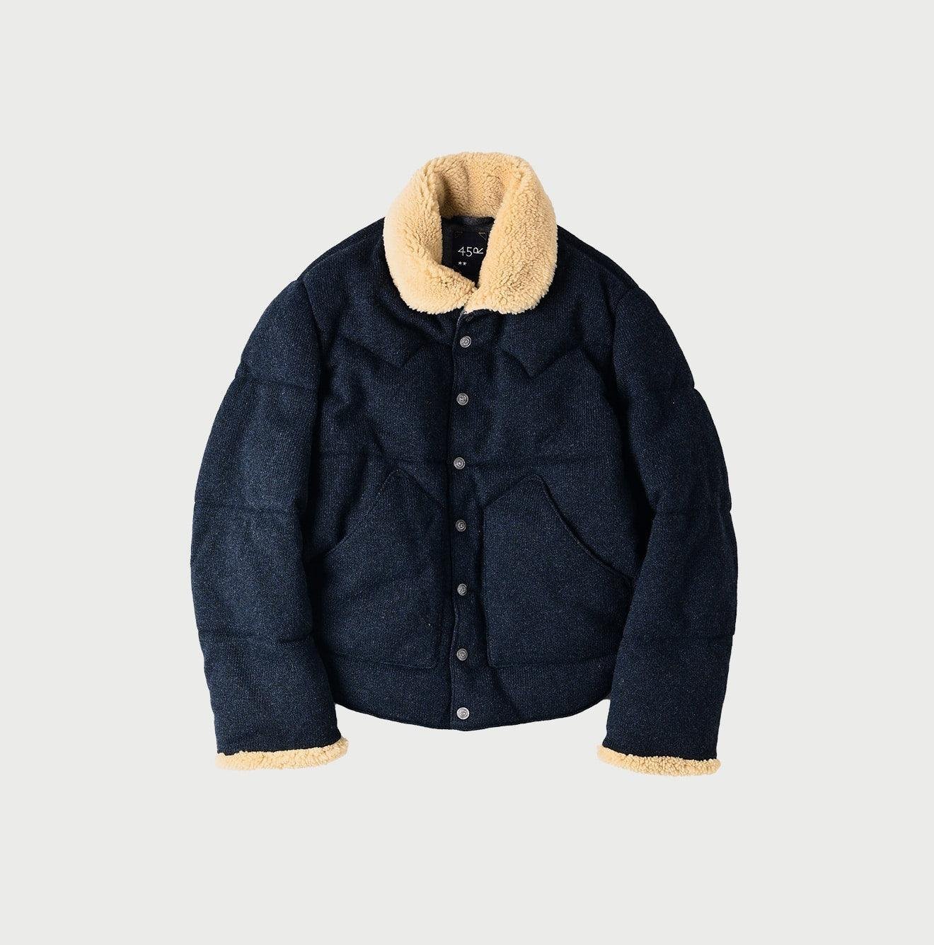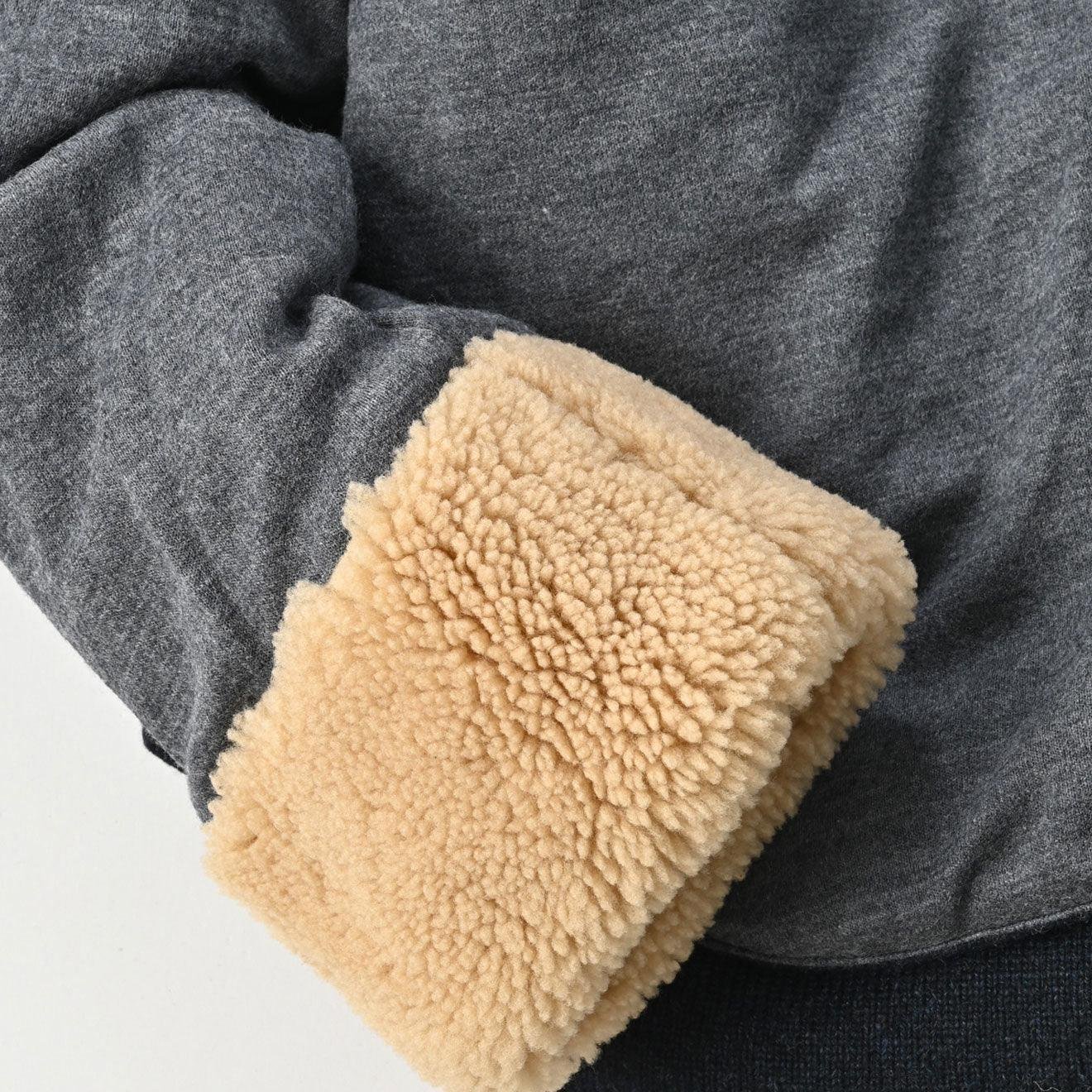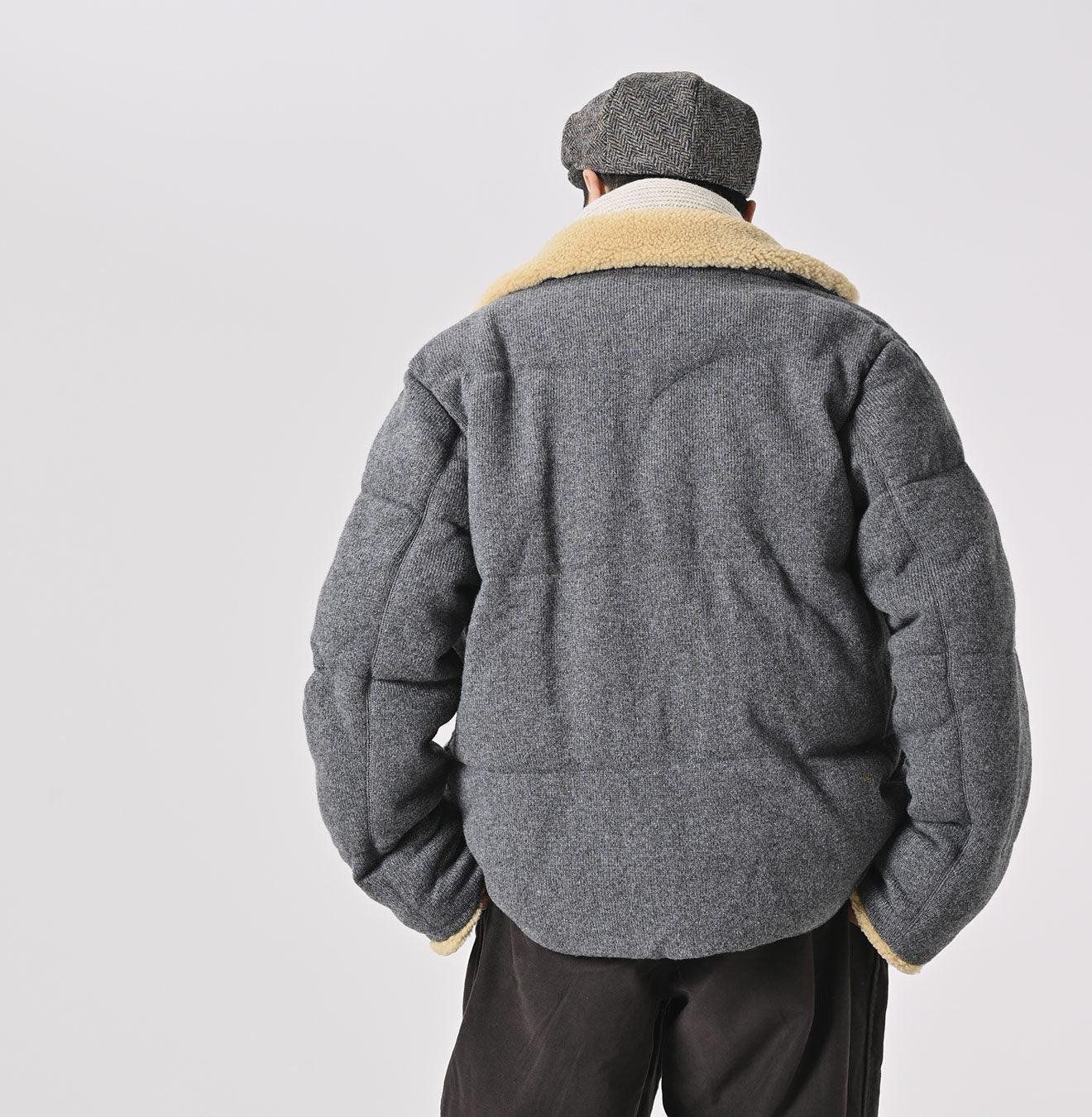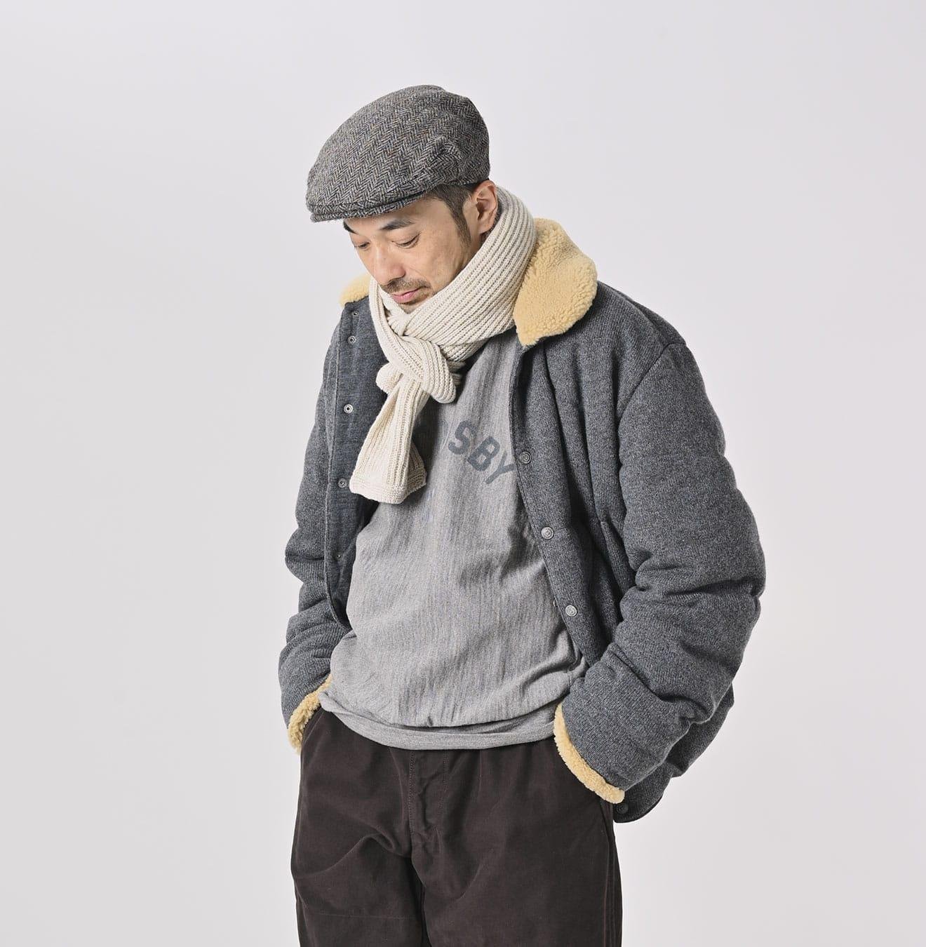 At first glance. the fabric appears tweedy. reminiscent of Shetland wool. but its touch reveals the unmistakable softness of cashmere. The interior features jersey flannel. combining a formal appearance with relaxed comfort. This one-of-a-kind blouson reflects a playful spirit and an earnest dedication to comfort and craftsmanship. embodying the timeless quality of 45R and Japanese artistry.