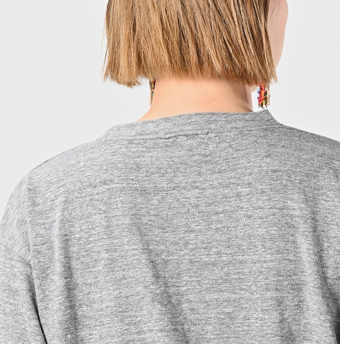Dyed while still in its top (raw cotton) form. the yarn is spun slightly thick and knit into a jersey with a tweed-like mélange tone. The gentle mix of colors brings warmth and subtle character—creating a texture and feel that’s uniquely 45R.