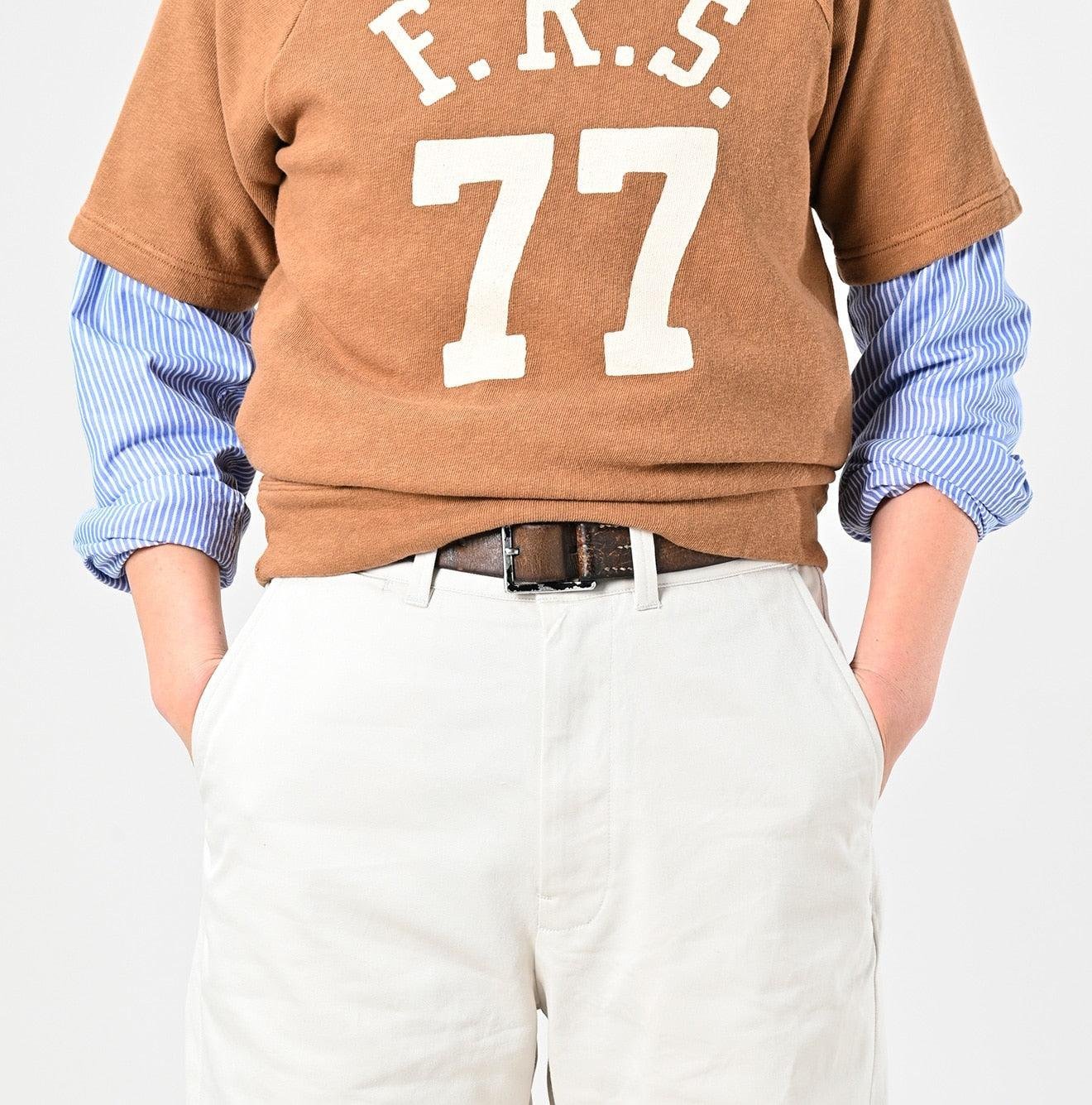 Crafted from rugged chino fabric with a distinct. textured weave. these pants are built to last. Over time. they mold to your body. developing rich character—subtle fading. raised stitching. and a beautifully worn-in feel. A true testament to Japanese craftsmanship. they reflect 45R’s dedication to quality. becoming more personal and unique with every wear.