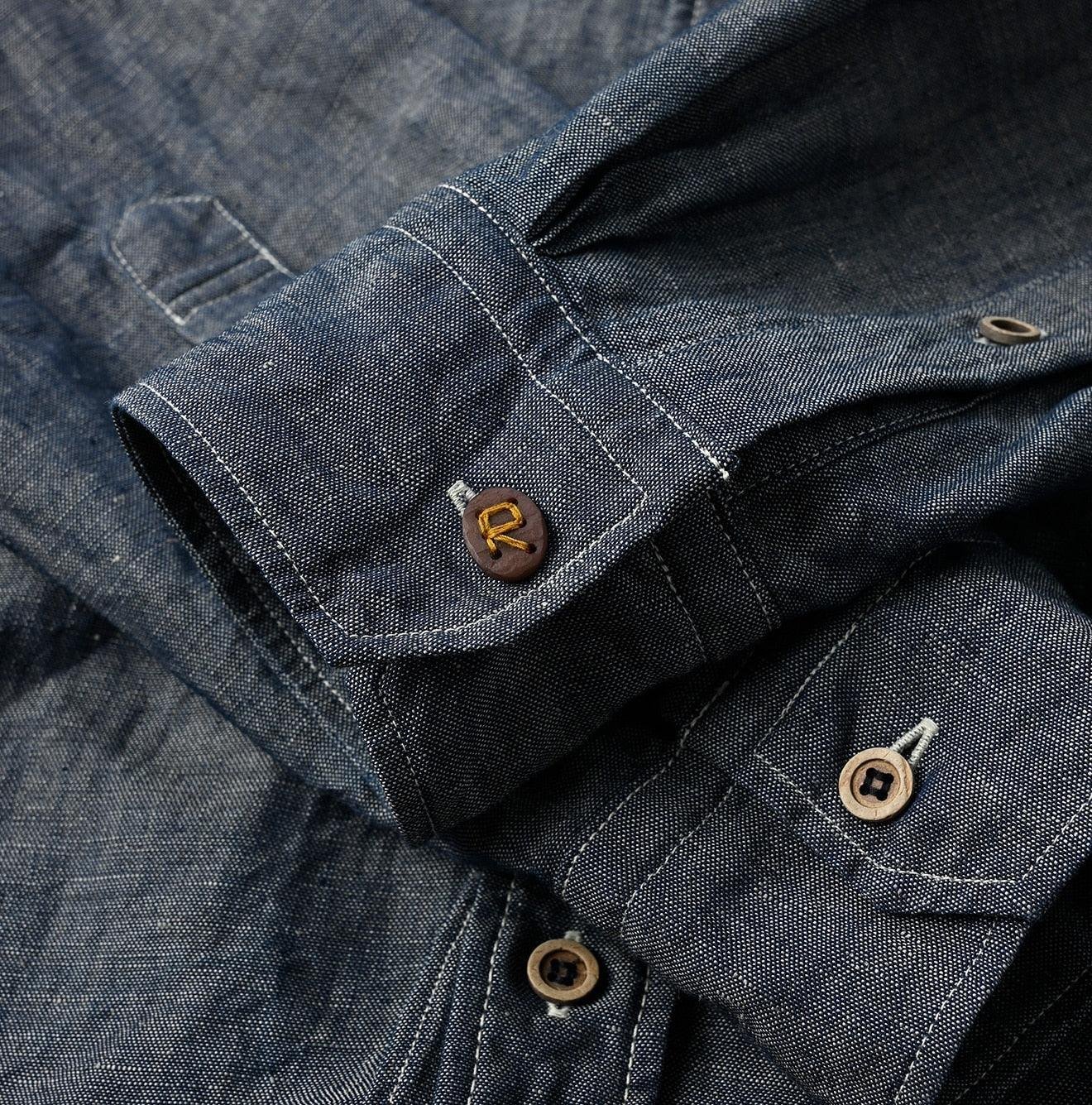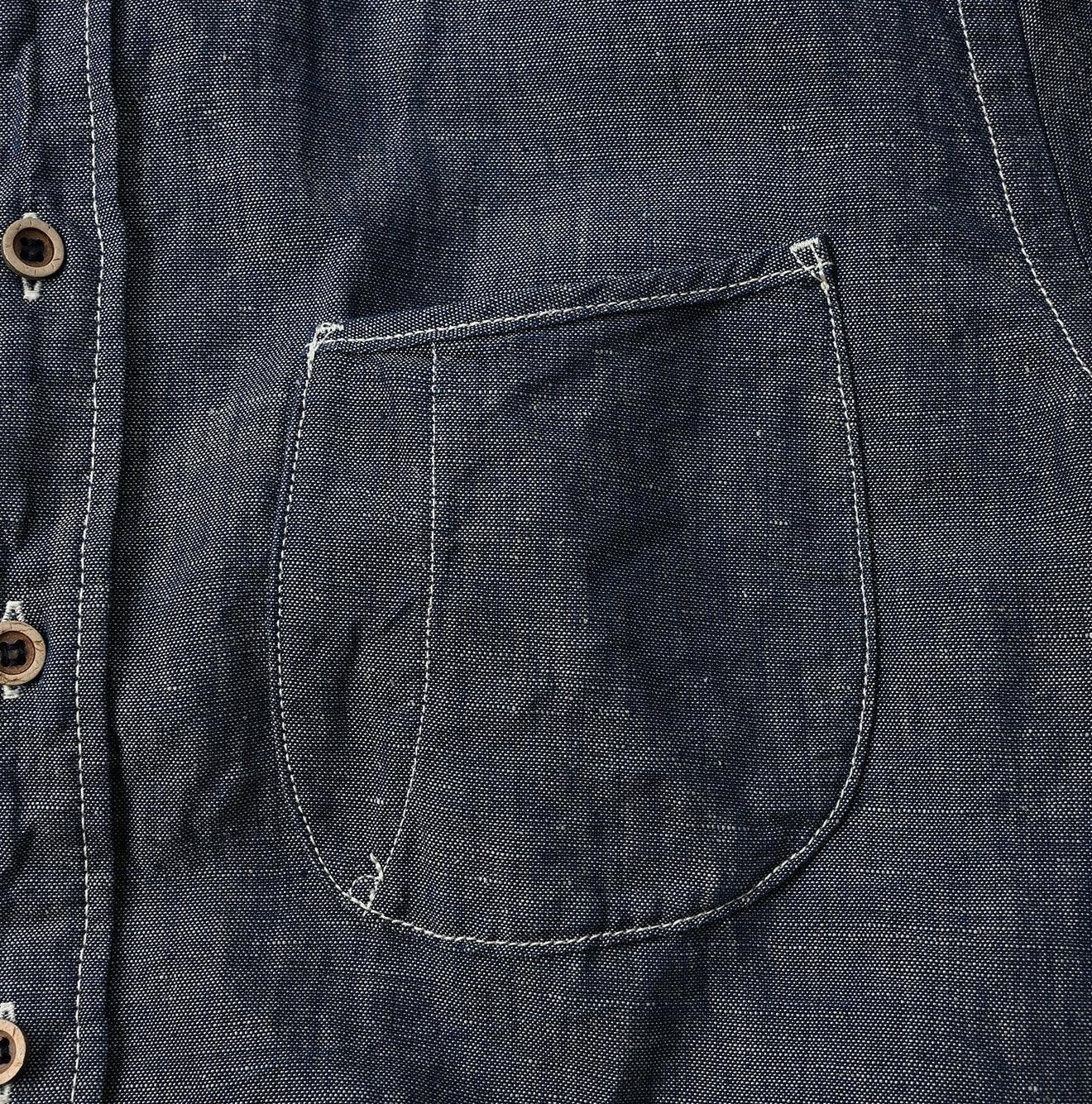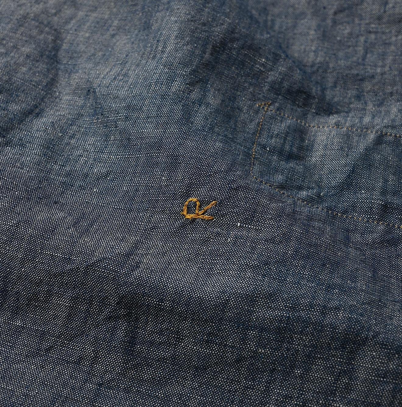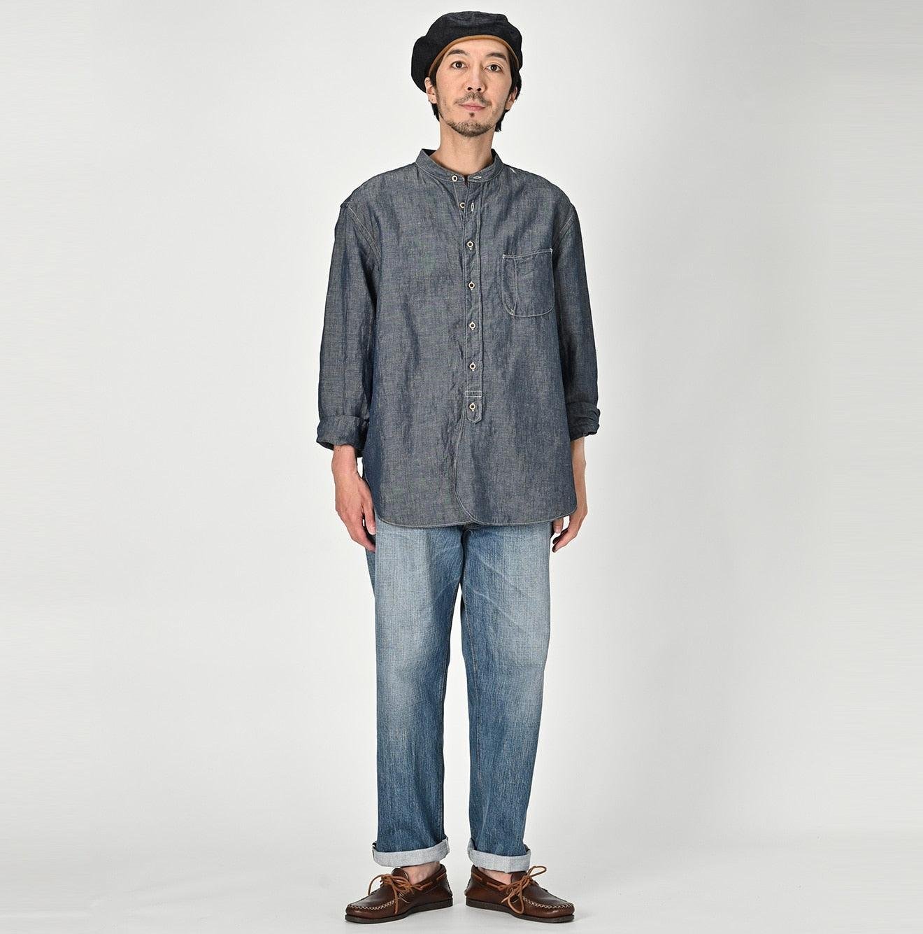 The grayish indigo hue of this shirt undergoes a special aging process. resulting in a matte gradient that retains its elegance over time. This showcases the meticulous Japanese craftsmanship that 45R is renowned for.
