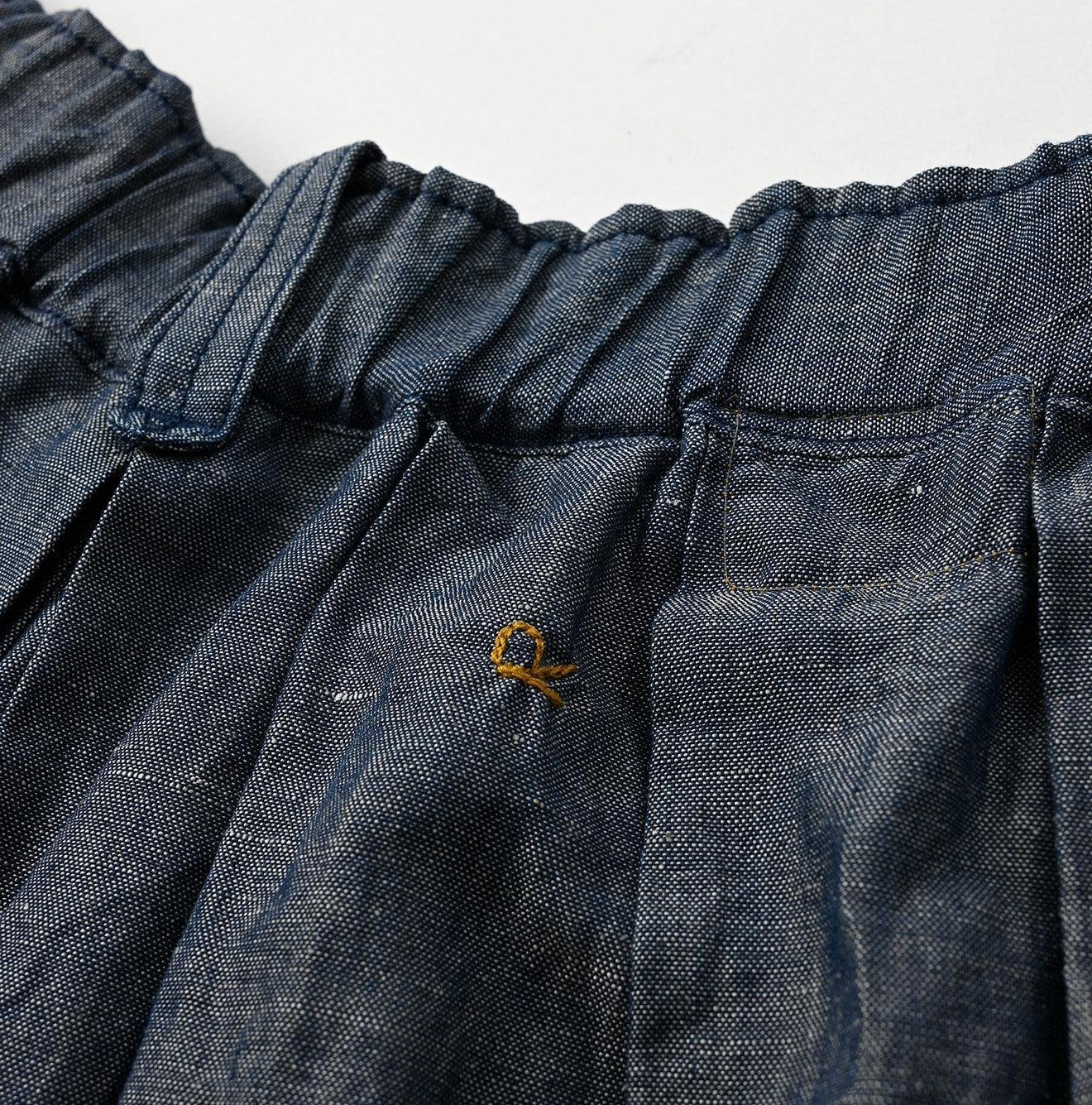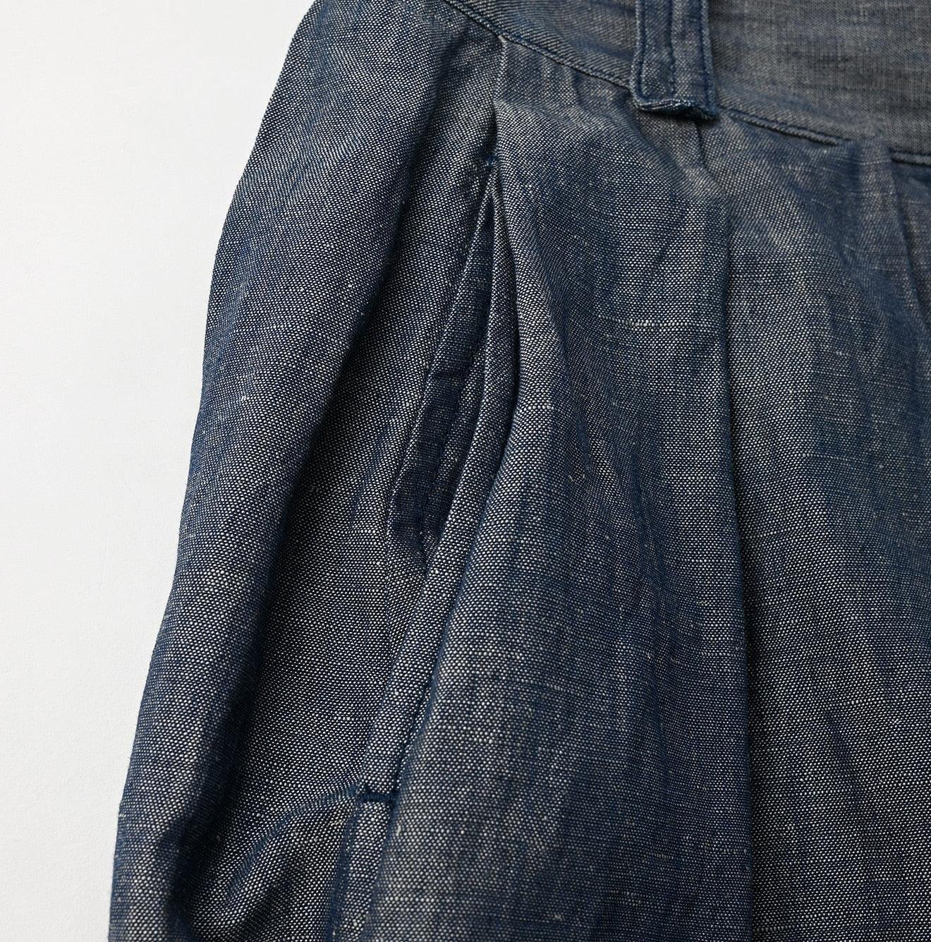 Crafted with a blend of linen for a crisp. textured feel in the warp and cotton for softness in the weft. this dungaree fabric is a versatile material that can be comfortably worn all year round. The unique nep texture. created by weaving with slub yarn. adds to its distinctive charm. showcasing the meticulous Japanese craftsmanship that 45R is renowned for.