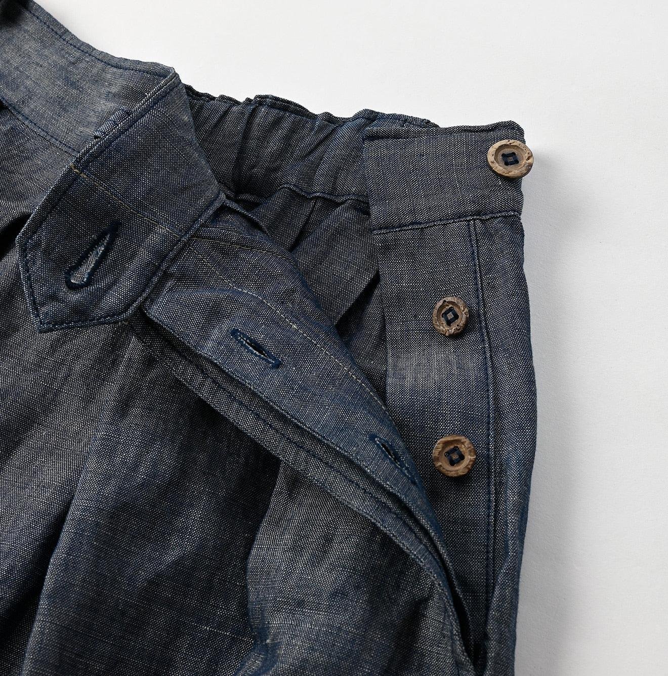 The Cotton Linen Dungaree Bloomers Pants Nou by 45R feature a generously used fabric that creates a charming balloon-like silhouette. These pants offer a classic look. making them a versatile addition to any wardrobe.