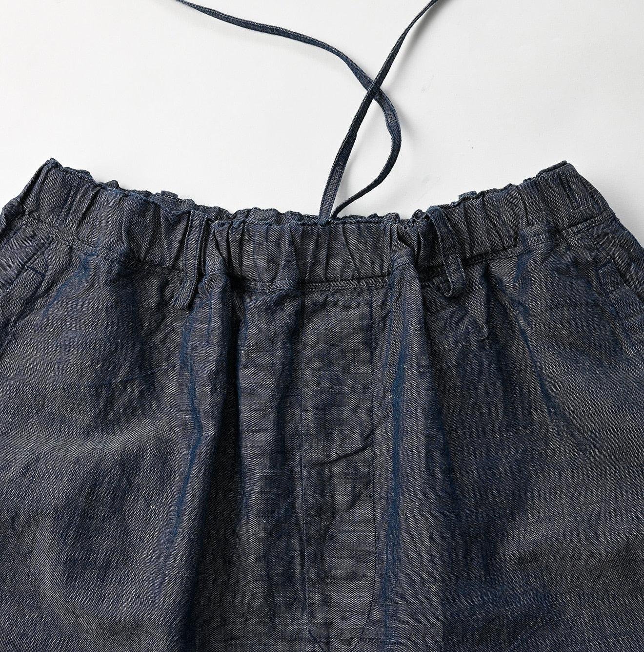 Crafted with a blend of linen for a crisp. textured feel in the warp and cotton for softness in the weft. this dungaree fabric is a versatile material that can be comfortably worn all year round. The unique nep texture. created by weaving with slub yarn. adds to its distinctive charm. showcasing the meticulous Japanese craftsmanship that 45R is renowned for.