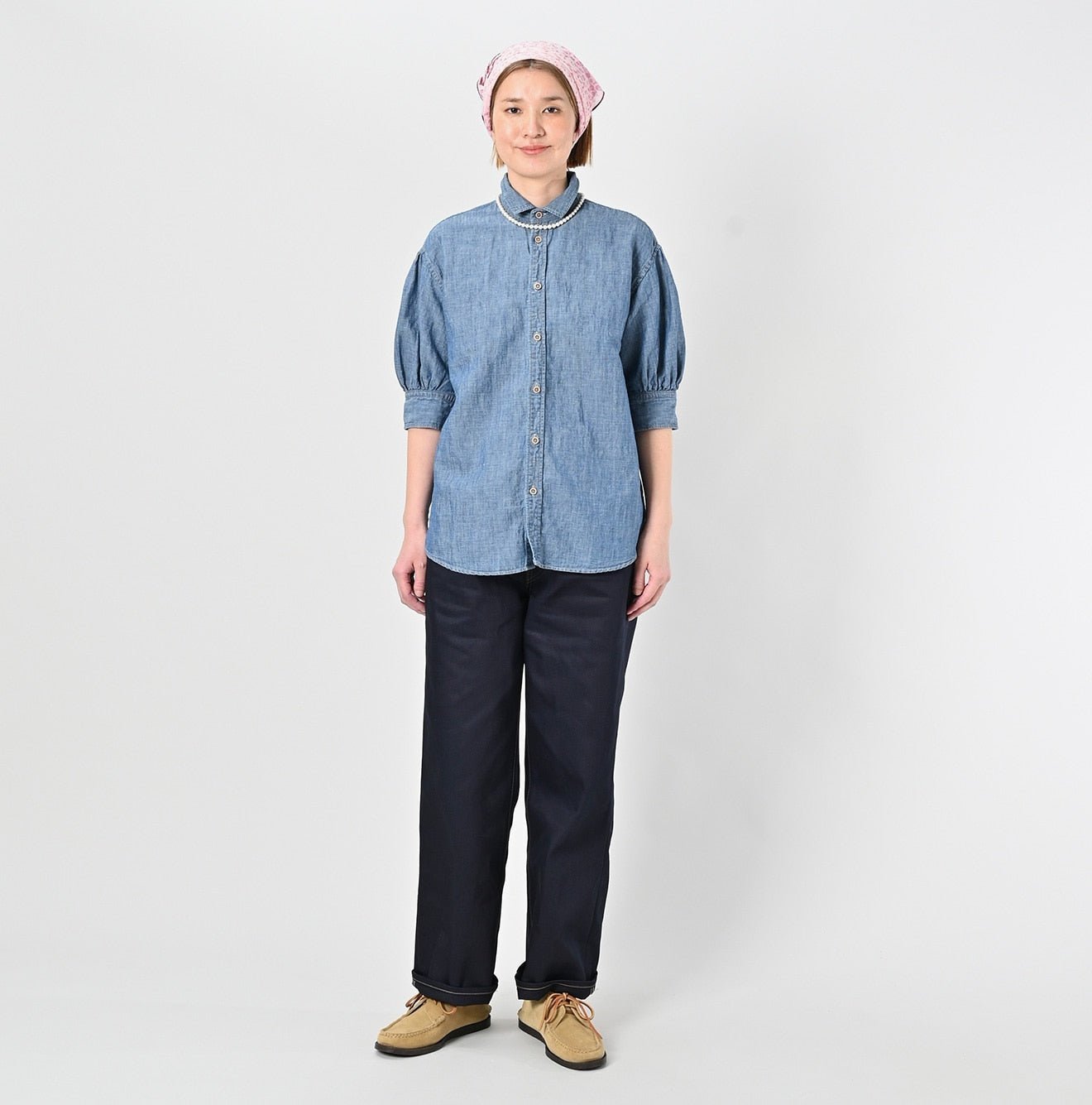 With sleeves that puff out gently like freshly baked bread rolls. this Cuppe Shirt features a charming five-minute sleeve design. The balance between the width and length has been thoughtfully tailored—making it an ideal shirt for women.